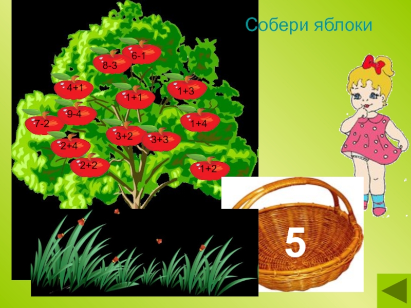 Слайд 3Собери яблоки