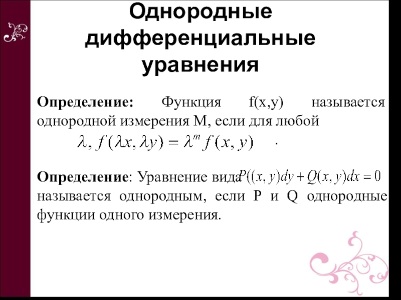 Слайд 25Определение: Функция f(x,y) называется однородной измерения M, если для любой
