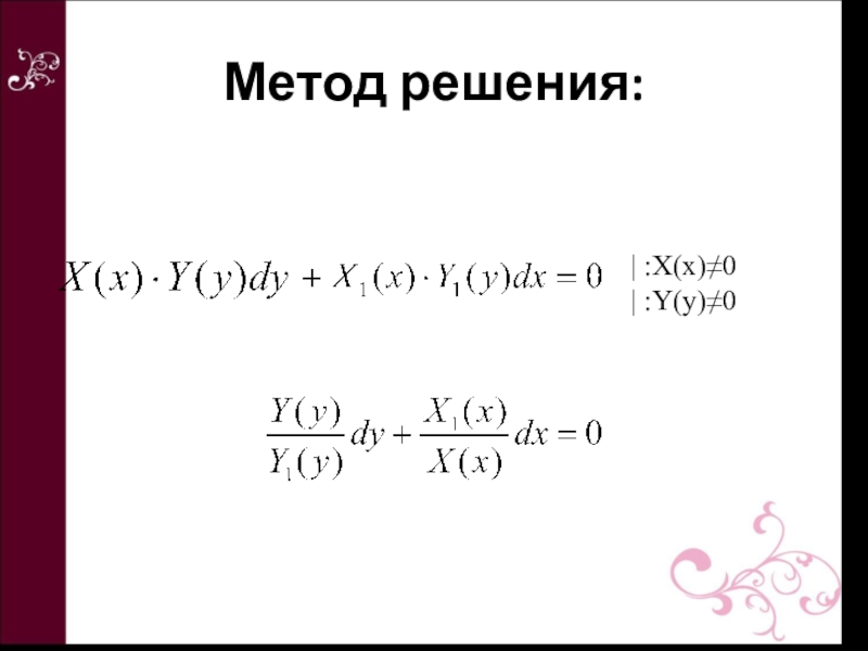 Слайд 19Решение методом Бернулли y ищем в виде произведения функции