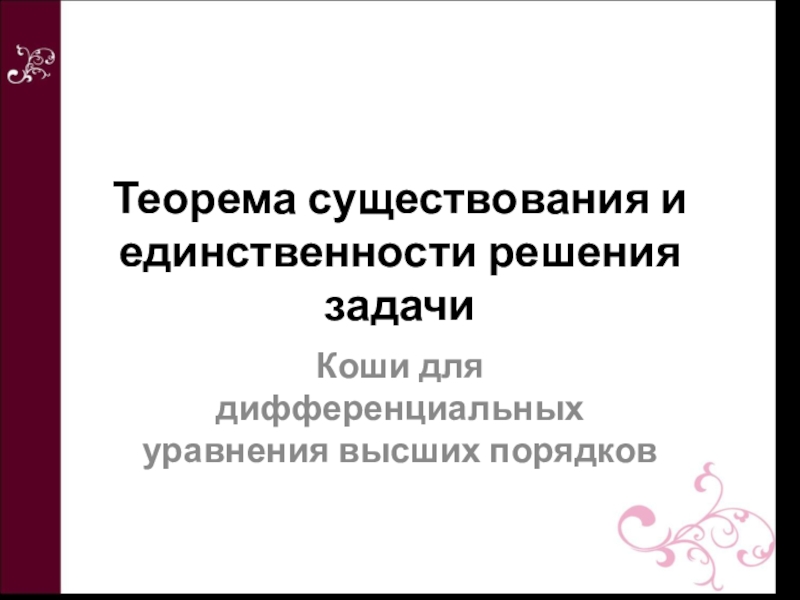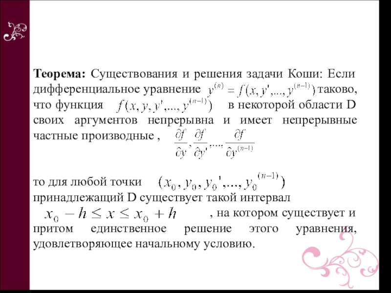 Слайд 35Теорема: Существования и решения задачи Коши: Если дифференциальное уравнение