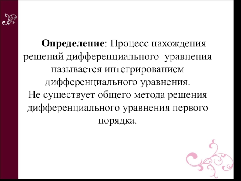Слайд 10 Определение: Процесс нахождения решений дифференциального уравнения называется интегрированием дифференциального уравнения.