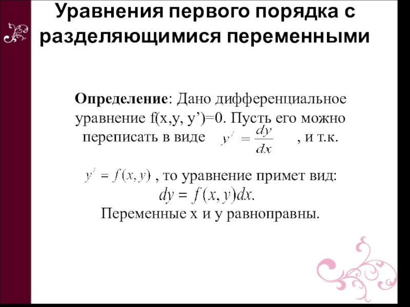 Слайд 11Определение: Дано дифференциальное уравнение f(x,y, y’)=0. Пусть его можно переписать в