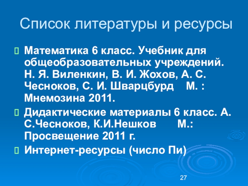Я. Виленкин, В. И. Жохов, А. С. Чесноков, С. И. Шварцбурд М. :Мнемозина 2011.