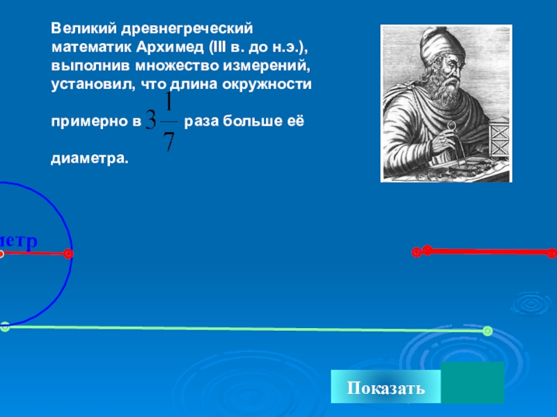 Великий древнегреческий математик Архимед (III в. до н.э.), выполнив множество измерений,