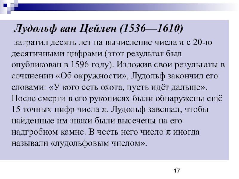 Слайд 17 Лудольф ван Цейлен (1536—1610)