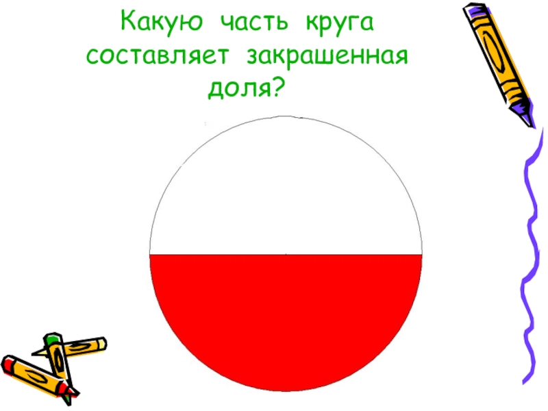Слайд 11Какую часть круга составляет закрашенная доля?