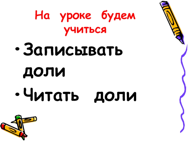 На уроке будем учитьсяЗаписывать долиЧитать доли