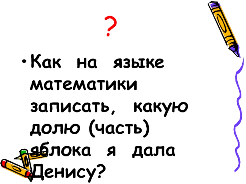 ?Как на языке математики записать, какую  долю (часть) яблока я дала Денису?