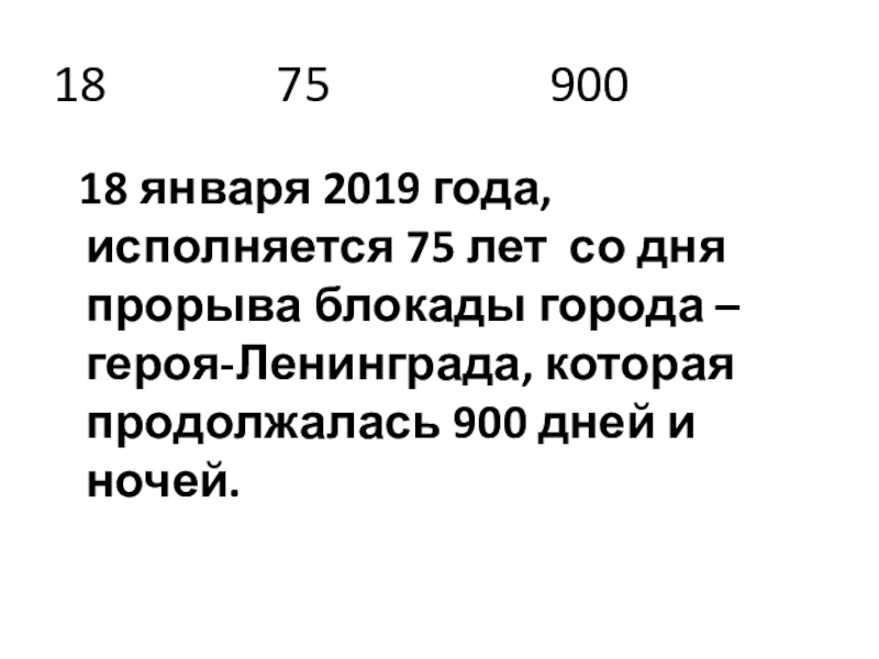 18 января 2019 года, исполняется 75 лет со дня прорыва блокады города – героя-Ленинграда, которая продолжалась 900 дней и ночей.