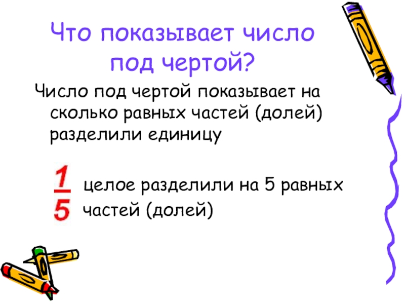 Число под чертой показывает на сколько равных долей разделили единицу.