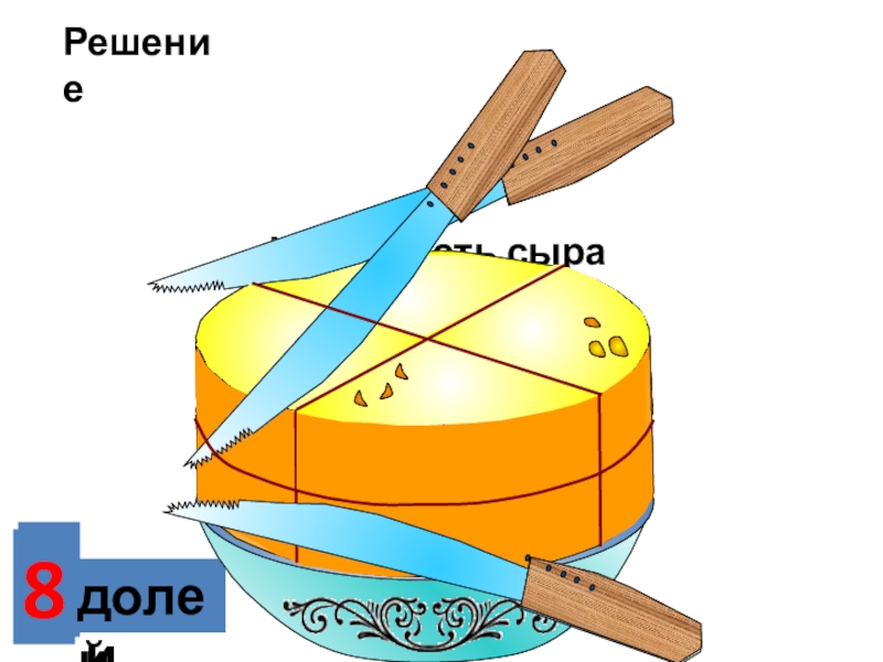 Как разрезать головку сыра на 8 равных долей,        сделав только
