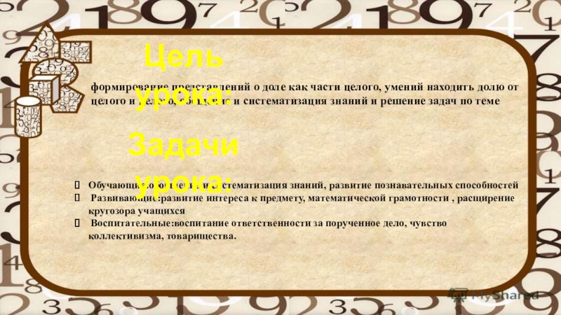 Развивающие:развитие интереса к предмету, математической грамотности , расщирение кругозора учащихся