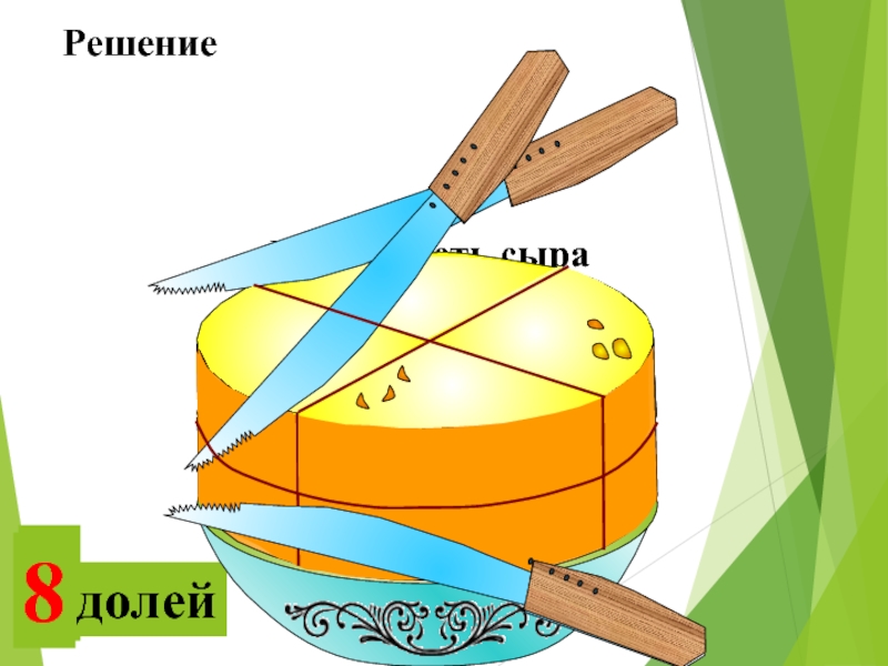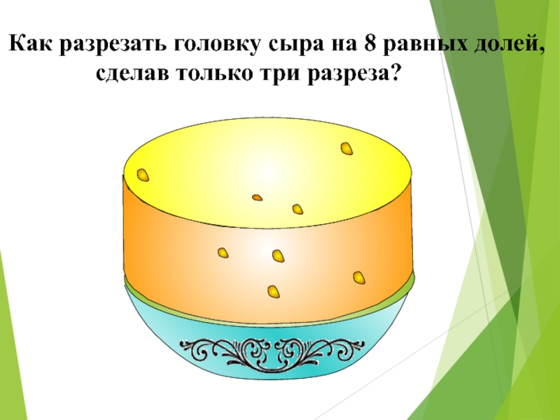 Как разрезать головку сыра на 8 равных долей,        сделав только
