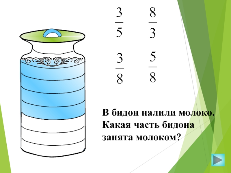 В бидон налили молоко.Какая часть бидона занята молоком?