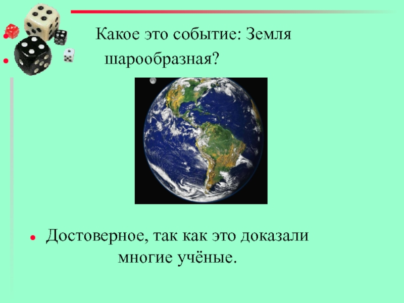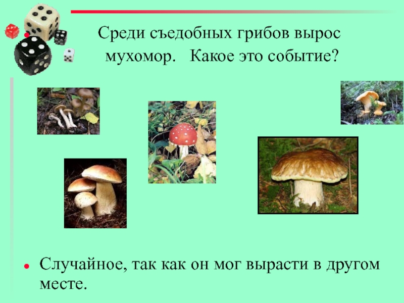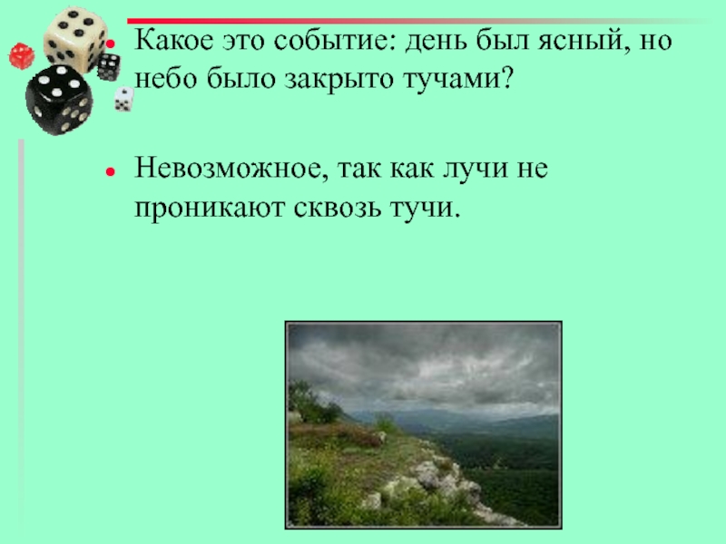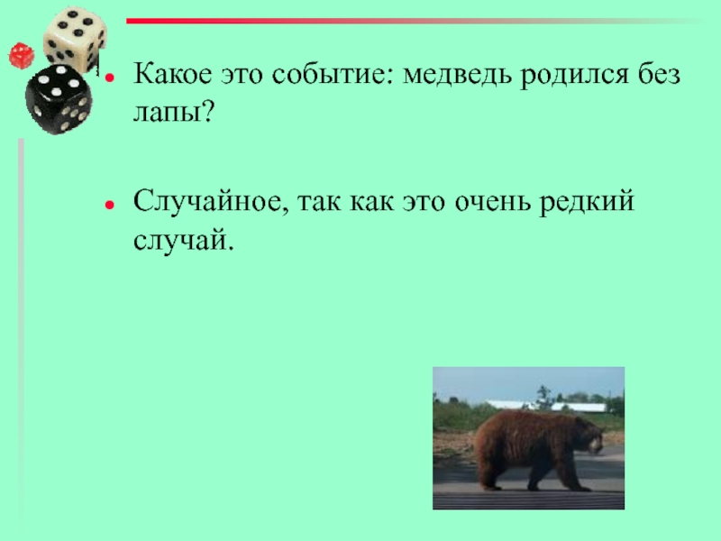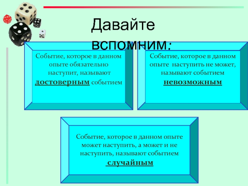 Событие, которое в данном опыте может наступить, а может и не наступить, называют событием