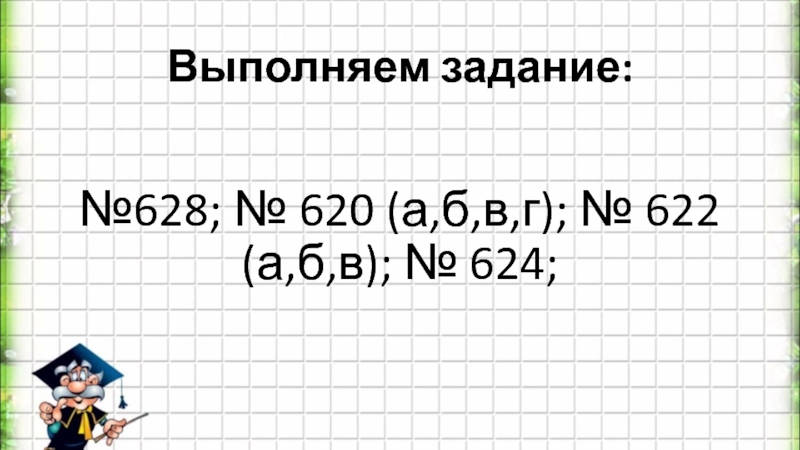 Выполняем задание: №628; № 620 (а,б,в,г); № 622 (а,б,в); № 624;