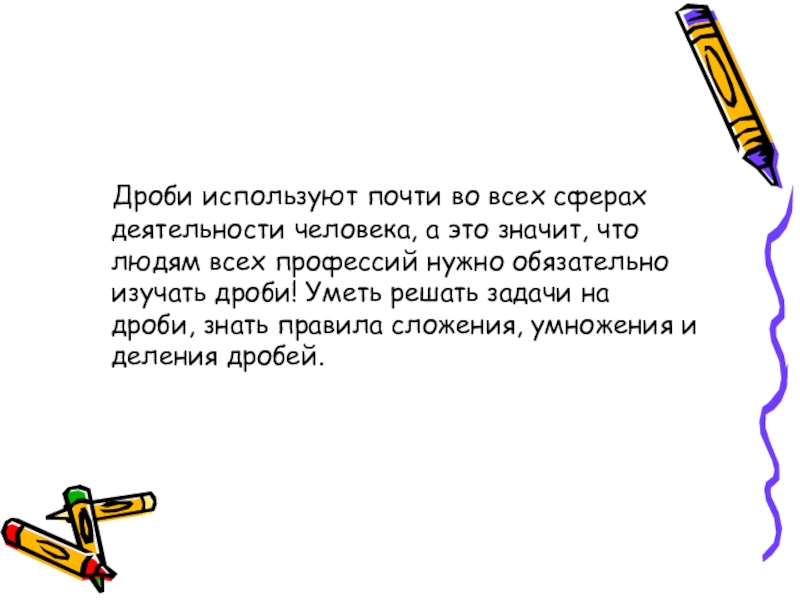 это значит, что людям всех профессий нужно обязательно изучать дроби! Уметь решать задачи на дроби, знать правила сложения, умножения и деления дробей.