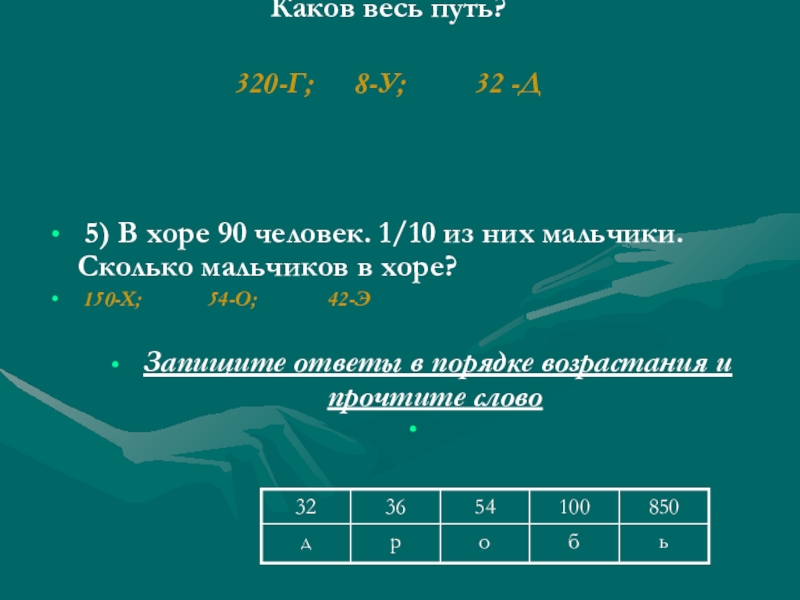 5) В хоре 90 человек. 1/10 из них мальчики. Сколько мальчиков в хоре?