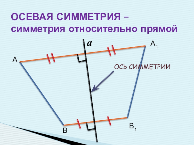 Слайд 5ОСЕВАЯ СИММЕТРИЯ – симметрия относительно прямой