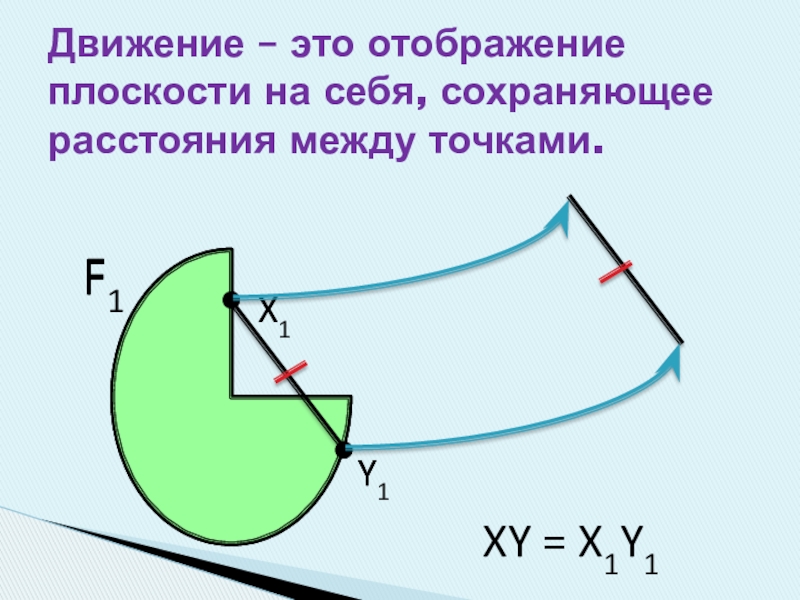 Движение – это отображение плоскости на себя, сохраняющее расстояния между точками.Y1XY = X1Y1