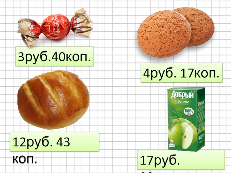 4руб. 17коп.17руб. 80коп.12руб. 43 коп.3руб.40коп.