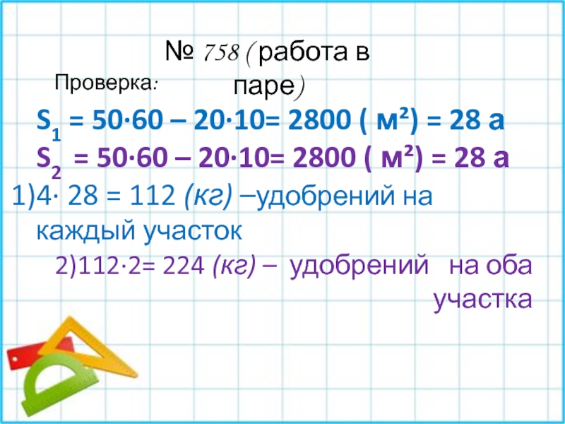 S2 = 50∙60 – 20∙10= 2800 ( м²) = 28 а