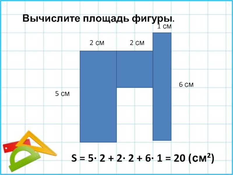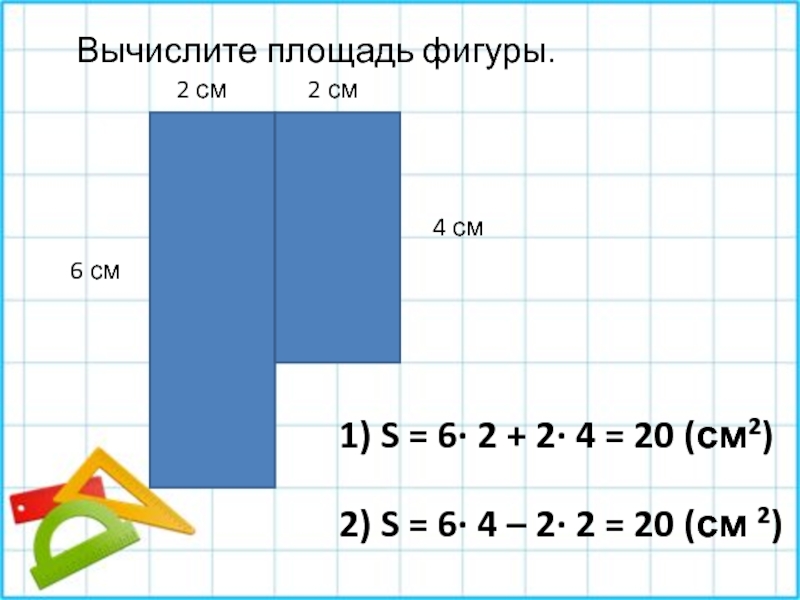 2) S = 6∙ 4 – 2∙ 2 = 20 (см ²)