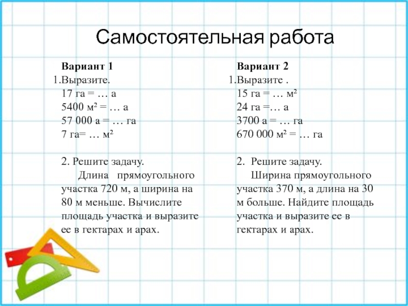 Ширина прямоугольного участка 370 м, а длина на 30 м больше. Найдите площадь участка и выразите ее в гектарах и арах.