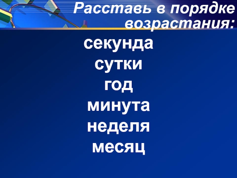 Расставь в порядке возрастания:секундасутки годминута неделямесяц