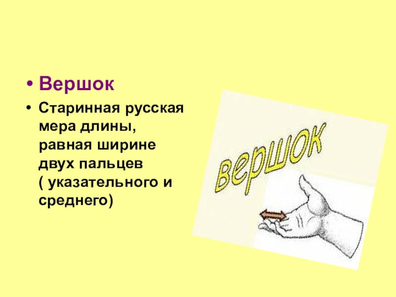 Изготовляя простейшие орудия труда, строя жилища, добывая пищу, возникала необходимость измерять расстояния, а затем площади, емкости, массу, время. При измерении расстояний использовали руки и ноги.