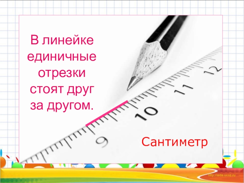 Слайд 1 Презентация «Сантиметр- единица измерения длины»