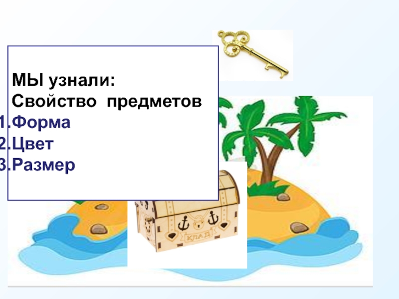 МЫ узнали:Свойство предметовФормаЦветРазмер