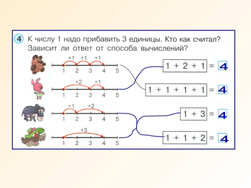 Слайд 7На вокзале у перрона Стояло 4 вагона Добавили еще 1, Чтоб был большой локомотив. Теперь