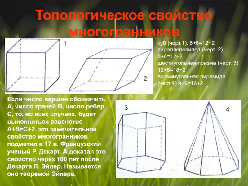 куб (черт.1). 8+6=12+2 параллелепипед (черт. 2) 8+6=12+2