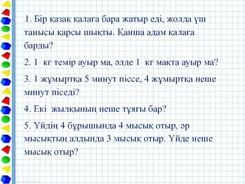 Презентация, доклад по математике на тему Есеп. Қанша Арзан?