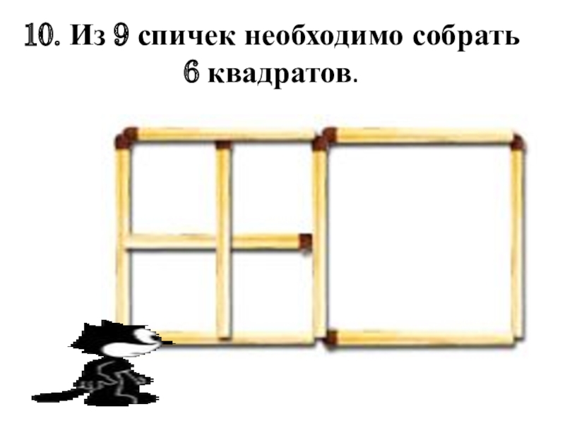 10. Из 9 спичек необходимо собрать 6 квадратов.