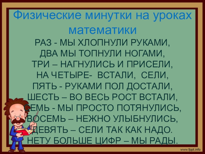Слайд 1ФИЗИЧЕСКИЕ МИНУТКИ НА УРОКАХ