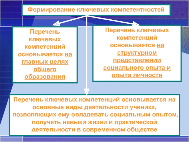 Перечень ключевых компетенций основывается на структурном представлении социального опыта и опыта личности