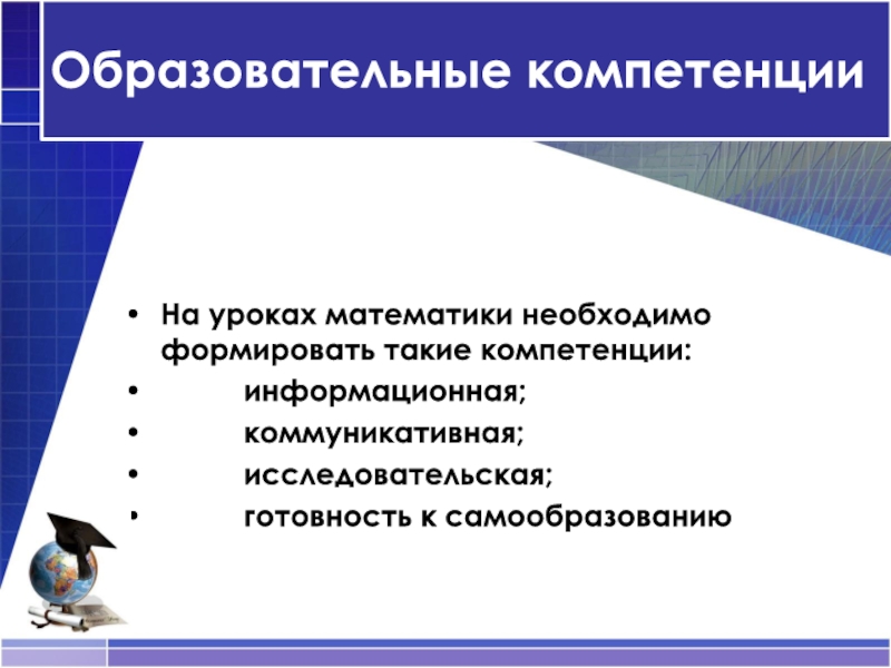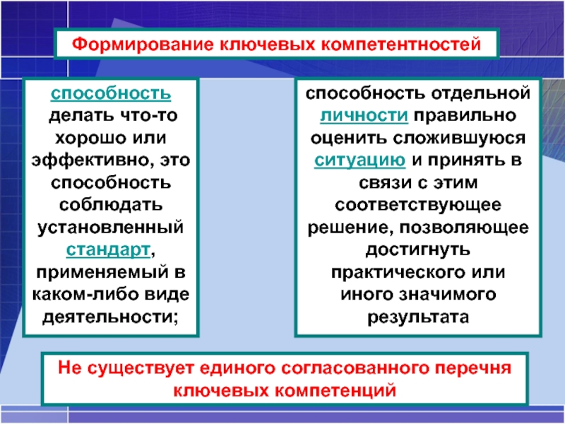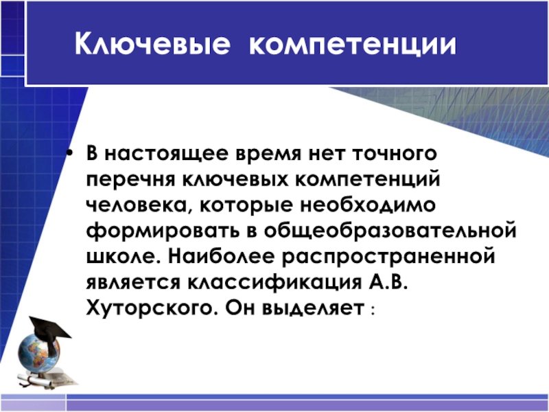 Перечень ключевых компетенций основывается на основные виды деятельности ученика, позволяющих ему овладевать социальным опытом, получать навыки жизни и практической деятельности в современном обществе