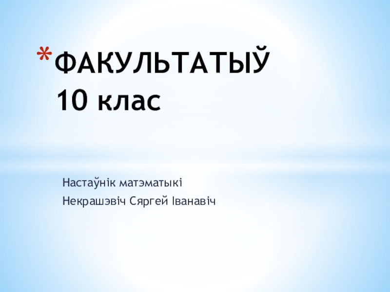 Настаўнік матэматыкіНекрашэвіч Сяргей ІванавічФАКУЛЬТАТЫЎ 10 клас