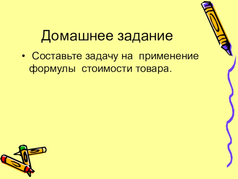 Домашнее задание Составьте задачу на применение формулы стоимости товара.