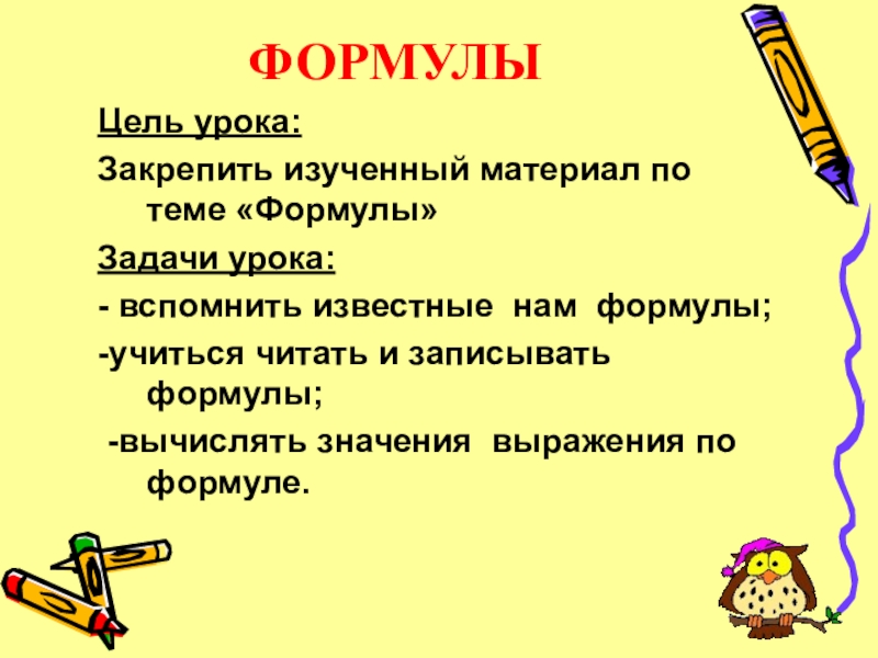 Закрепить изученный материал по теме «Формулы»