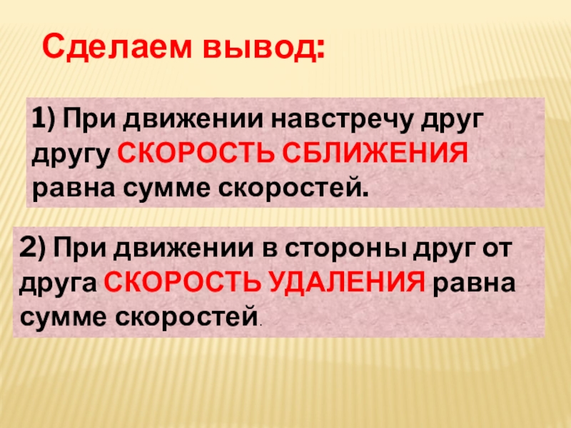 2) При движении в стороны друг от друга СКОРОСТЬ УДАЛЕНИЯ равна сумме скоростей.