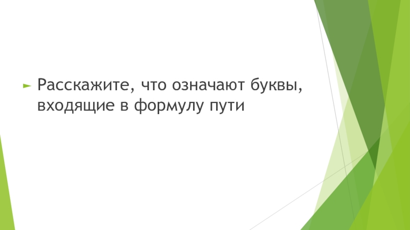 Слайд 5Расскажите, что означают буквы, входящие в формулу пути