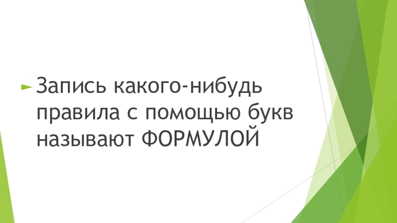 Слайд 2Запись какого-нибудь правила с помощью букв называют ФОРМУЛОЙ