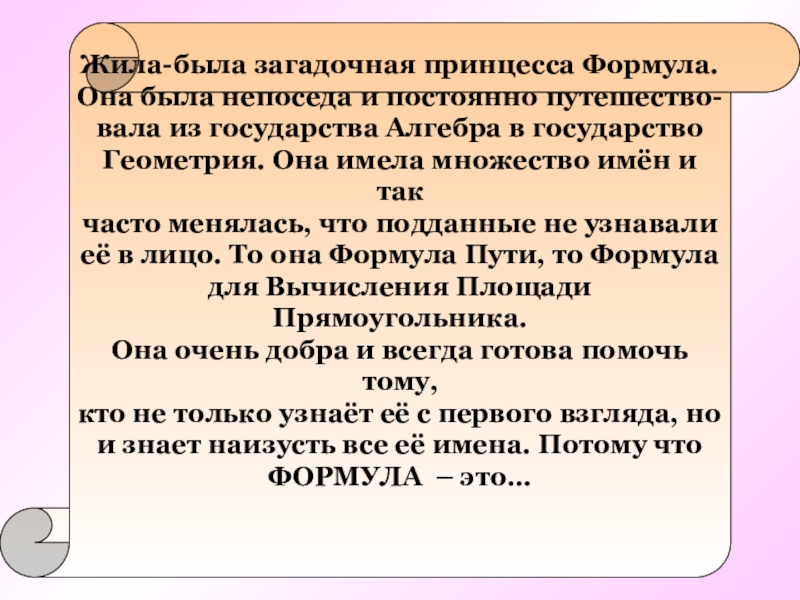 Правило, записанное на математическом языке, – это формула.