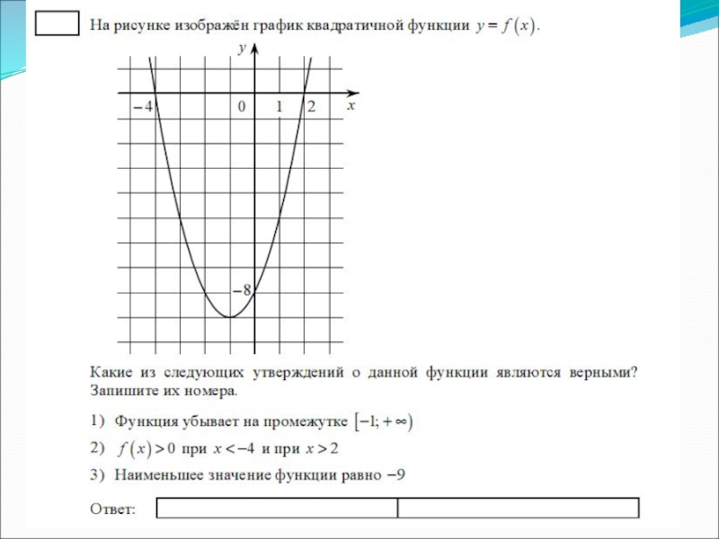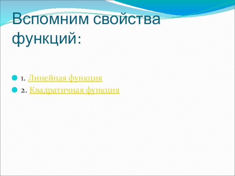 Вспомним свойства функций:1. Линейная функция2. Квадратичная функция