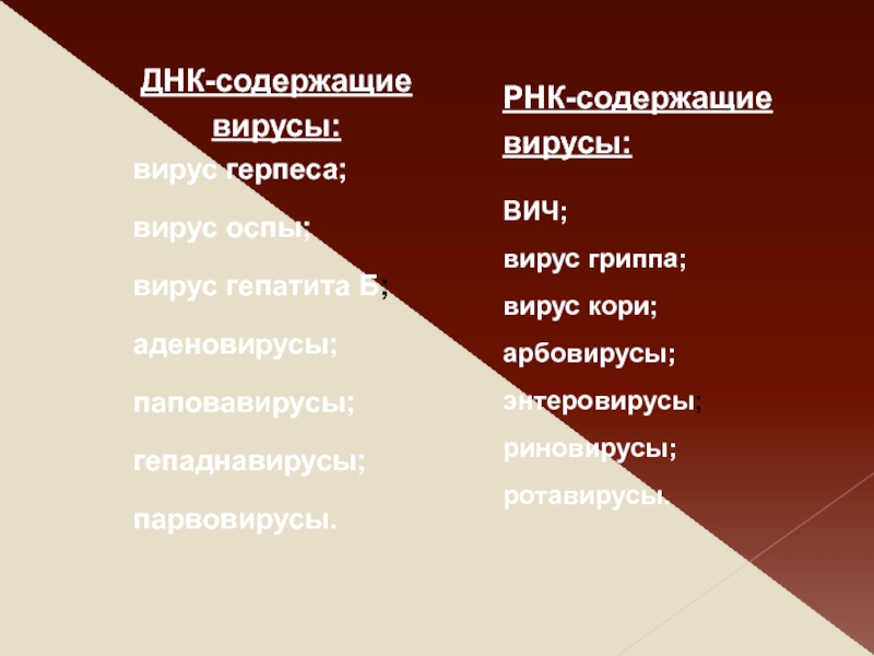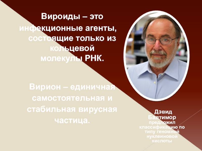 Дэвид Балтимор предложил классификацию по типу геномной нуклеиновой кислоты