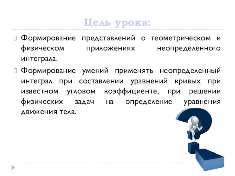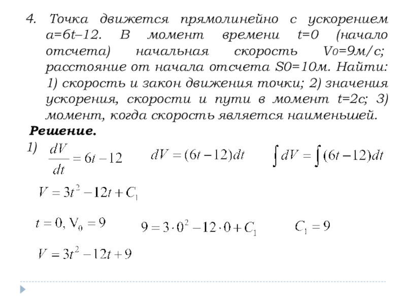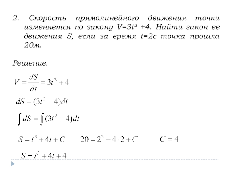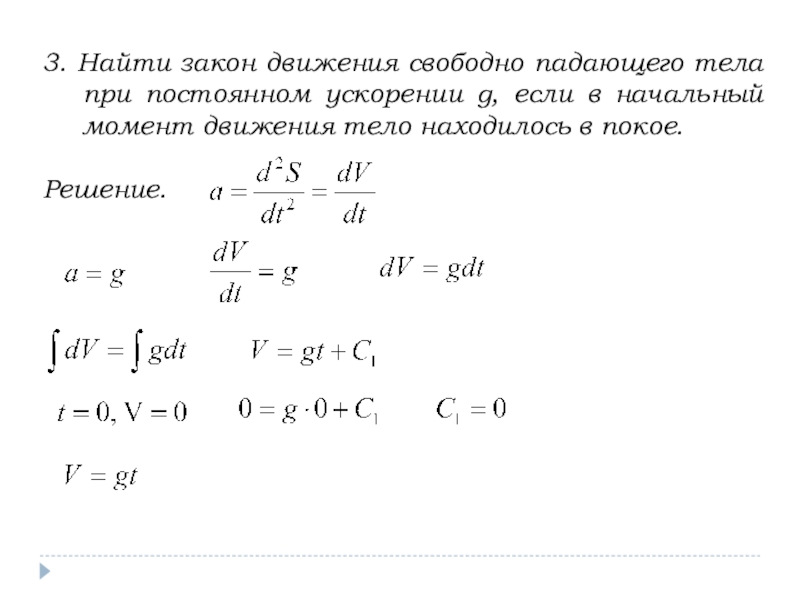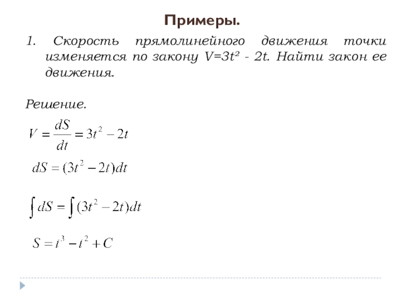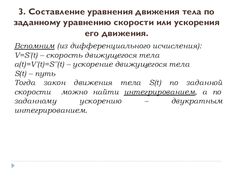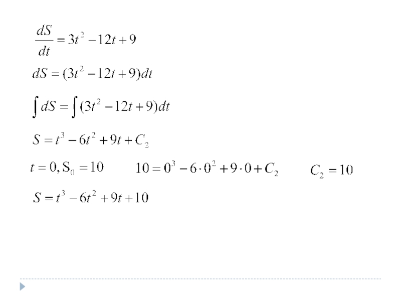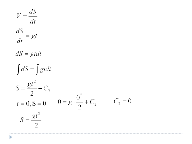Тогда закон движения тела S(t) по заданной скорости можно найти интегрированием, а по заданному ускорению – двукратным интегрированием.