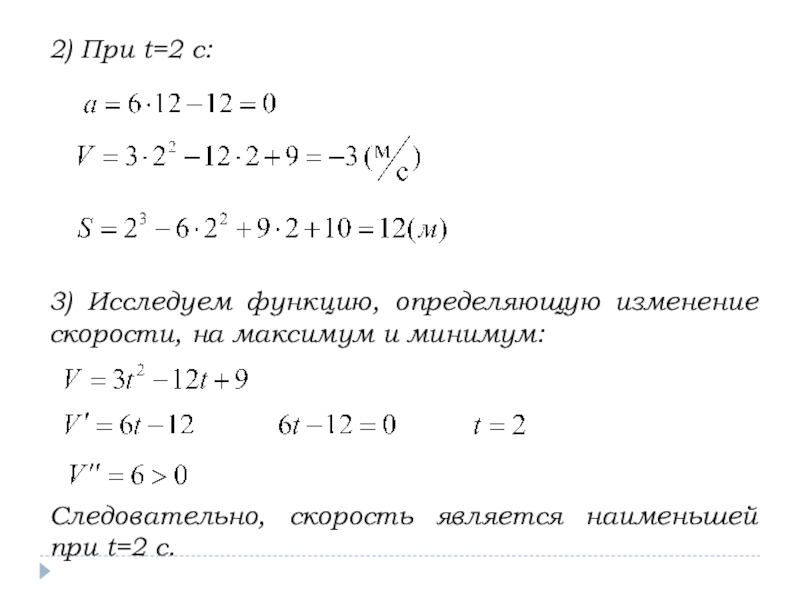 Следовательно, скорость является наименьшей при t=2 с.